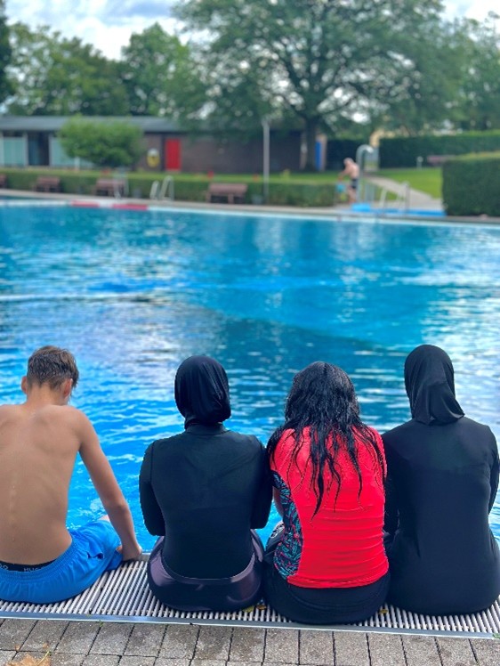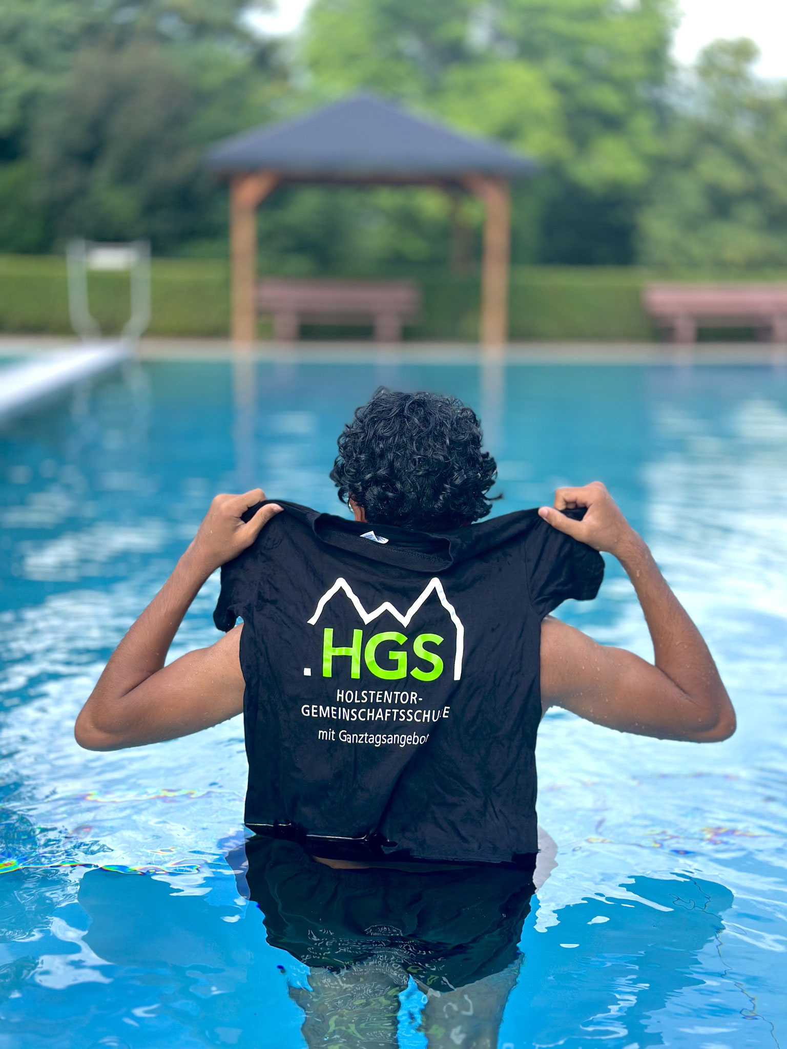 Ein Sprung ins Wasser, ein paar kräftige Züge – und am Ende das stolze Lächeln mit dem frisch erworbenen Abzeichen: Im Rahmen des Sommerferienprogramms der HGS hatten zehn Schüler:innen die Möglichkeit, ihr „Bronze-Abzeichen“ – also den Freischwimmer – zu machen. Organisiert und begleitet wurde die Aktion von zwei engagierten Erzieherinnen und einem sozialpädagogischen Assistenten des Trägers KinderWege: Jenny Denker, Lisa Denker und Ahmet Tekeli.